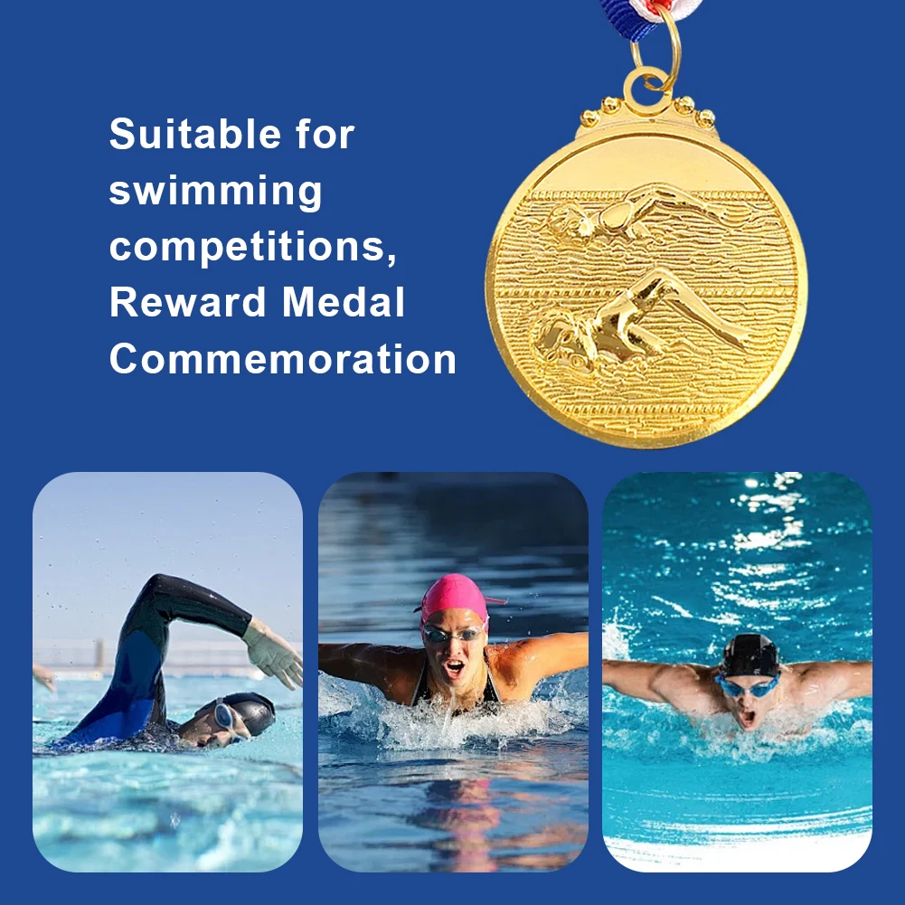 5cm Swimming Medal Metal Winner Medals with Neck Ribbon Gold/Silver/Bronze Medal 1st/2nd/3rd Place Medals for Sports Competition