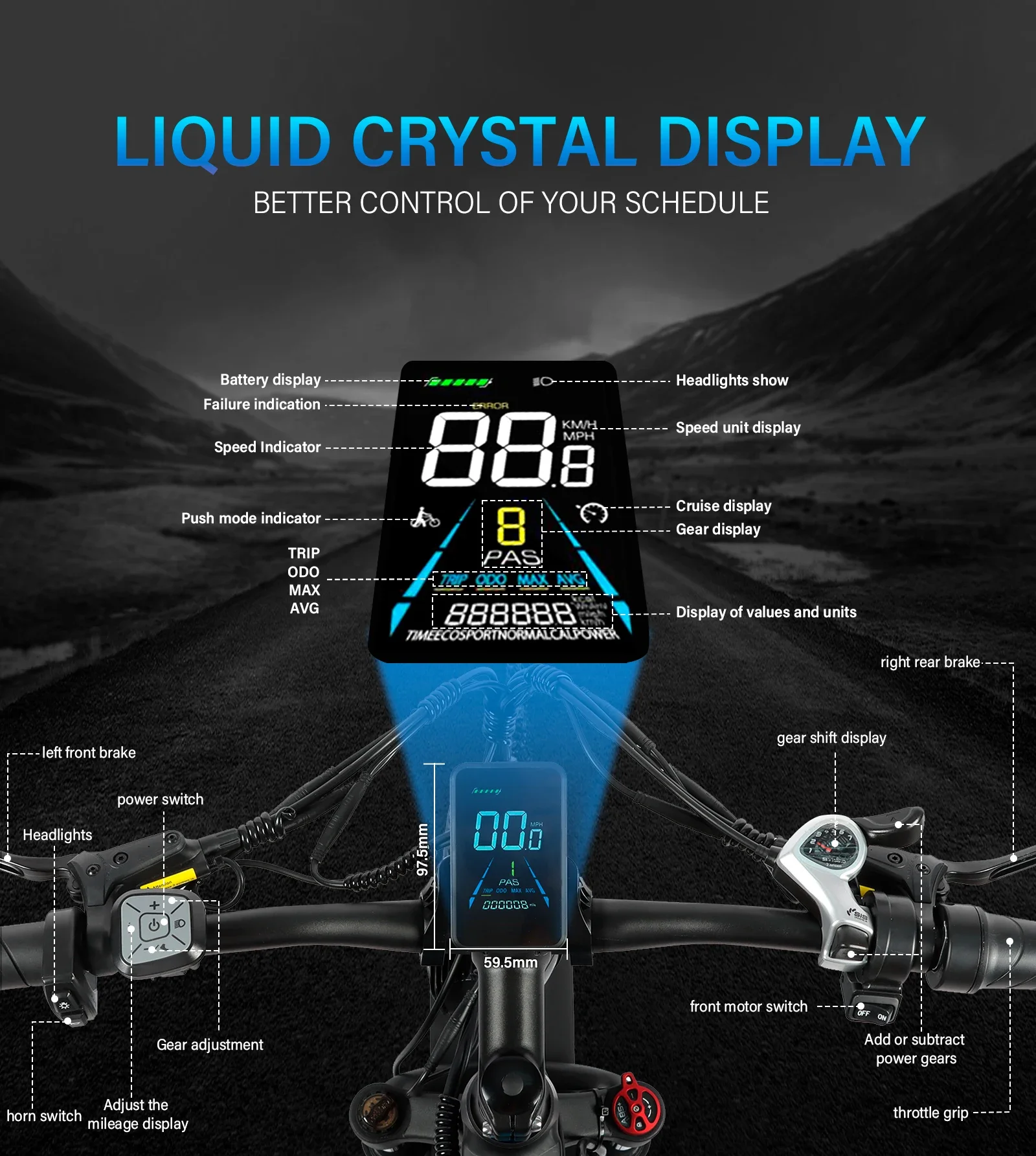 SPECIFICATIONSBrake: Disc brakeBraking system: disc brakeBrand Name: NoEnName_NullCertification: CEFolded: YesFrame Material: Aluminum AlloyHign-concerned Chemical: NoneMax Speed: 30-50km/hModel Number: DP-2603Motor: BrushlessOrigin: Mainland ChinaPower Source: Lithium BatteryPower Supply: Lithium BatteryRange per Power: 31 - 60 kmRated Passenger Capacity: One SeatStyle: Multifunctional TypeVoltage: 48VWattage: > 500wWheel Size: 26“show: LED LCD displaytire: Rubber pneumatic...
