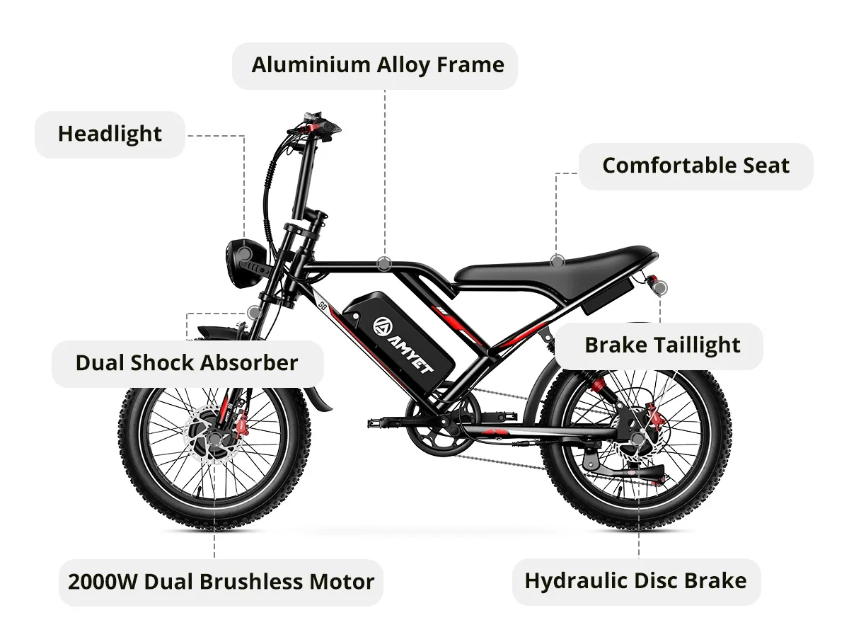 SPECIFICATIONSBrand Name: NoEnName_NullCertification: ceFolded: NoFrame Material: Aluminum AlloyHign-concerned Chemical: NoneMax Speed: >50km/hModel Number: S8Motor: BrushlessOrigin: Mainland ChinaPower Source: SolarPower Supply: Lithium BatteryRange per Power: > 60 kmRated Passenger Capacity: One SeatStyle: Standard TypeVoltage: 48VWattage: > 500wWheel Size: 20“Description S8 Electric Bike for Adults, 2000W Dual Motor AWD 48V 25Ah Ebike...