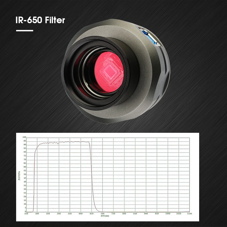 The IR650 filter, high transmittance of visible light, infrared transmittance low. The human eye cannot detect the infrared part of filter, and can adjust the scenery within react to the color of the image rendering color to achieve the best visual effect, greatly improve the image quality.