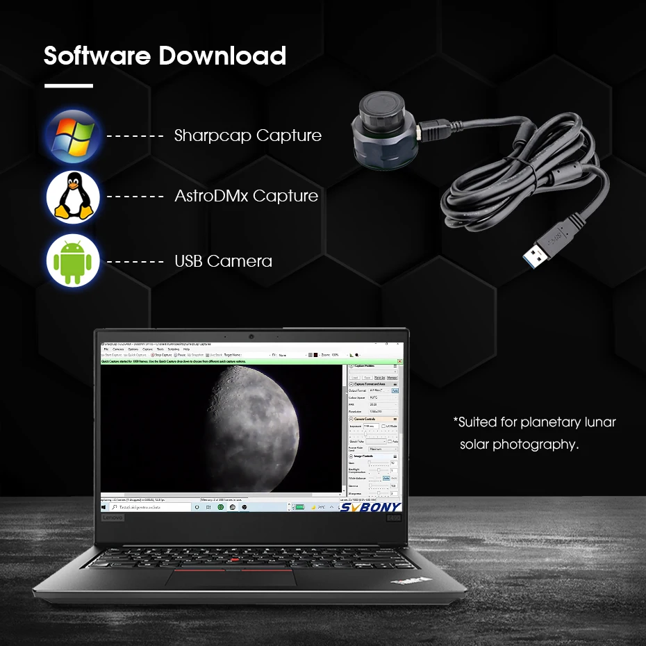 Plug and play without driver, easier to use. USB 3.0 is much faster than USB 2.0. And the camera supports a real-time dynamic observation and crystal clear image. The photosensitive area of the IMX415 is 1/3.2 inch, and the unit area per pixel is 1.4 microns. The sensitivity of the IMX415 has been significantly improved.