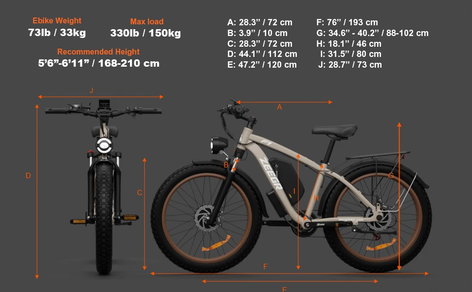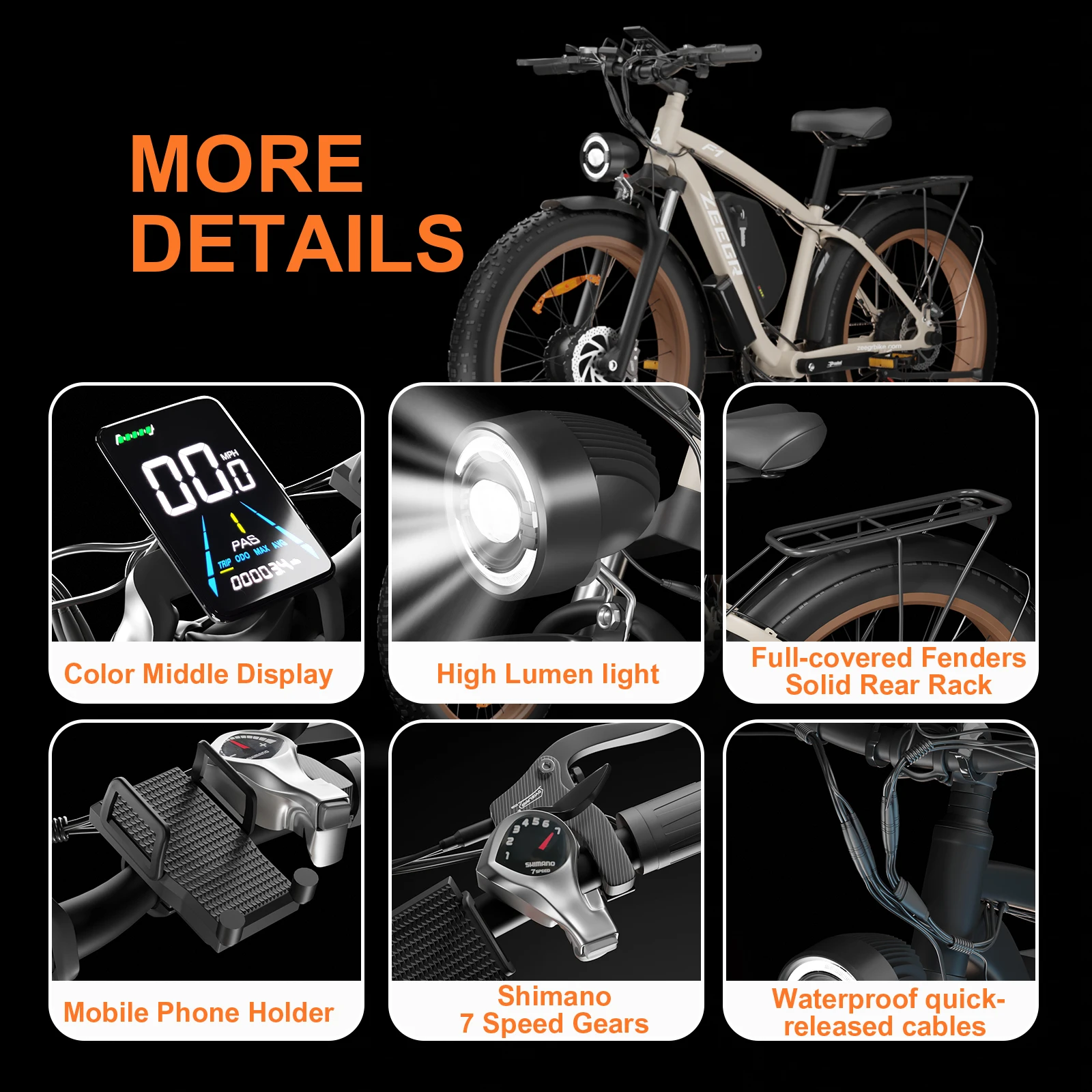 SPECIFICATIONSBrand Name: ZEEGRCertification: ceFolded: NoFrame Material: Aluminum AlloyHign-concerned Chemical: NoneMax Speed: >50km/hModel Number: F1Motor: BrushlessOrigin: Mainland ChinaPower Source: Lithium BatteryPower Supply: Lithium BatteryRange per Power: 31 - 60 kmRated Passenger Capacity: One SeatStyle: Standard TypeVoltage: 48VWattage: > 500wWheel Size: 26“ Ready stock in US warehouse, fast shipping, fast shipping Power...